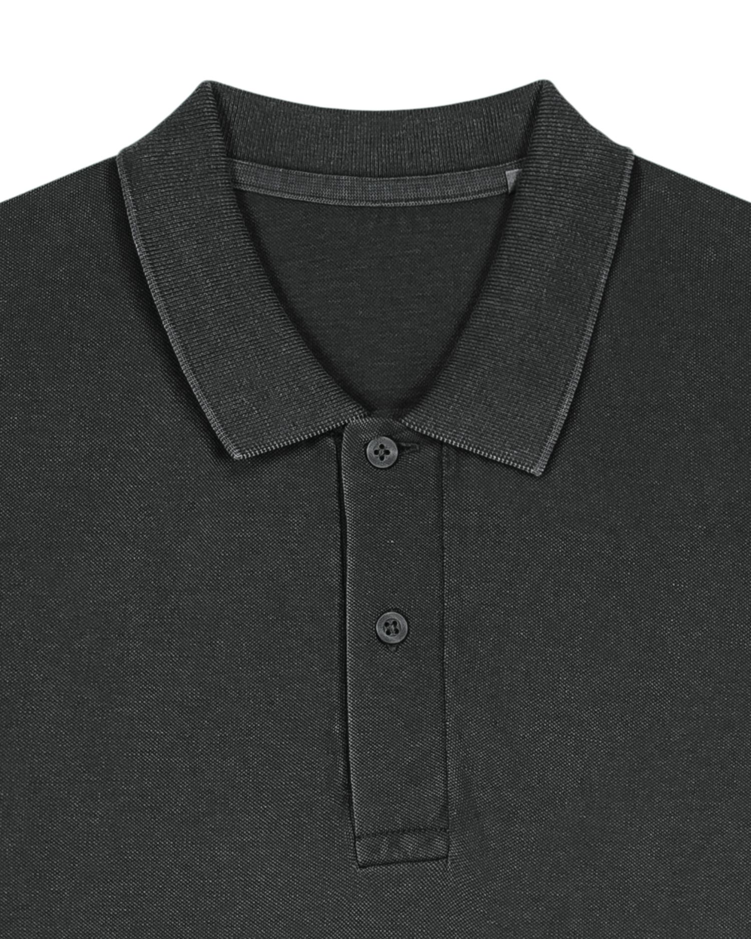 Flat rib-knit collar and sleeve cuffs Heavy single-jersey back neck tape Two-button front placket with buttons in matching colour Set-in sleeves Twin-needle topstitching at shoulder seams Side slits reinforced with bartacks Narrow twin-needle topstitching at hem Garment-dyed: each piece is unique; slight colour variation is possible