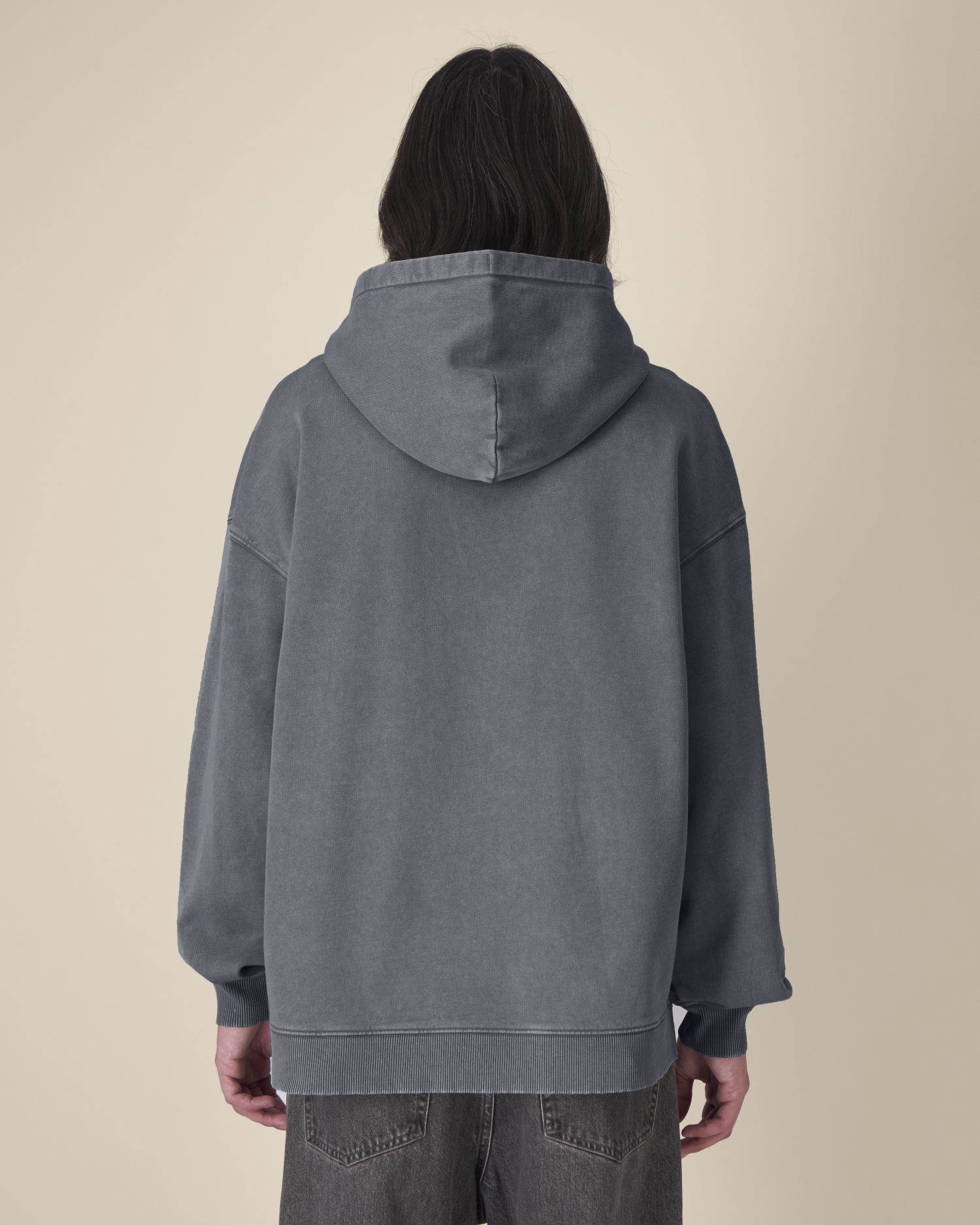 Double-layered hood in self-fabric Round drawcord in matching colour with closed-end metal tipping Metal eyelets Herringbone back neck tape Self-fabric half-moon at back neck Set-in sleeves Kangaroo pocket 1x1 rib at sleeve cuffs and hem Twin-needle topstitching at armholes, sleeve cuffs and hem Faded seam detail for a washed look Garment-dyed: each piece is unique; slight colour variation is possible Follow print recommendations