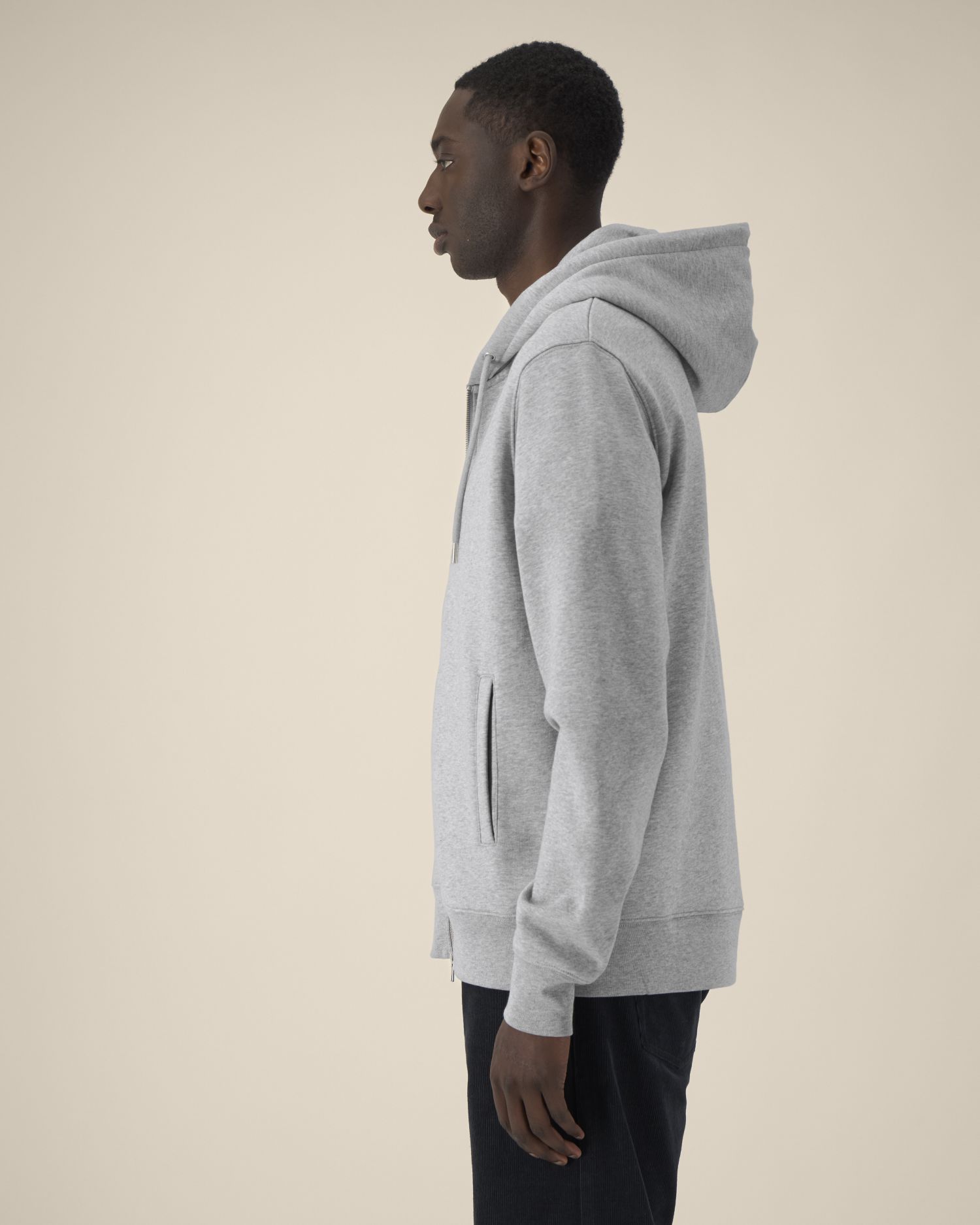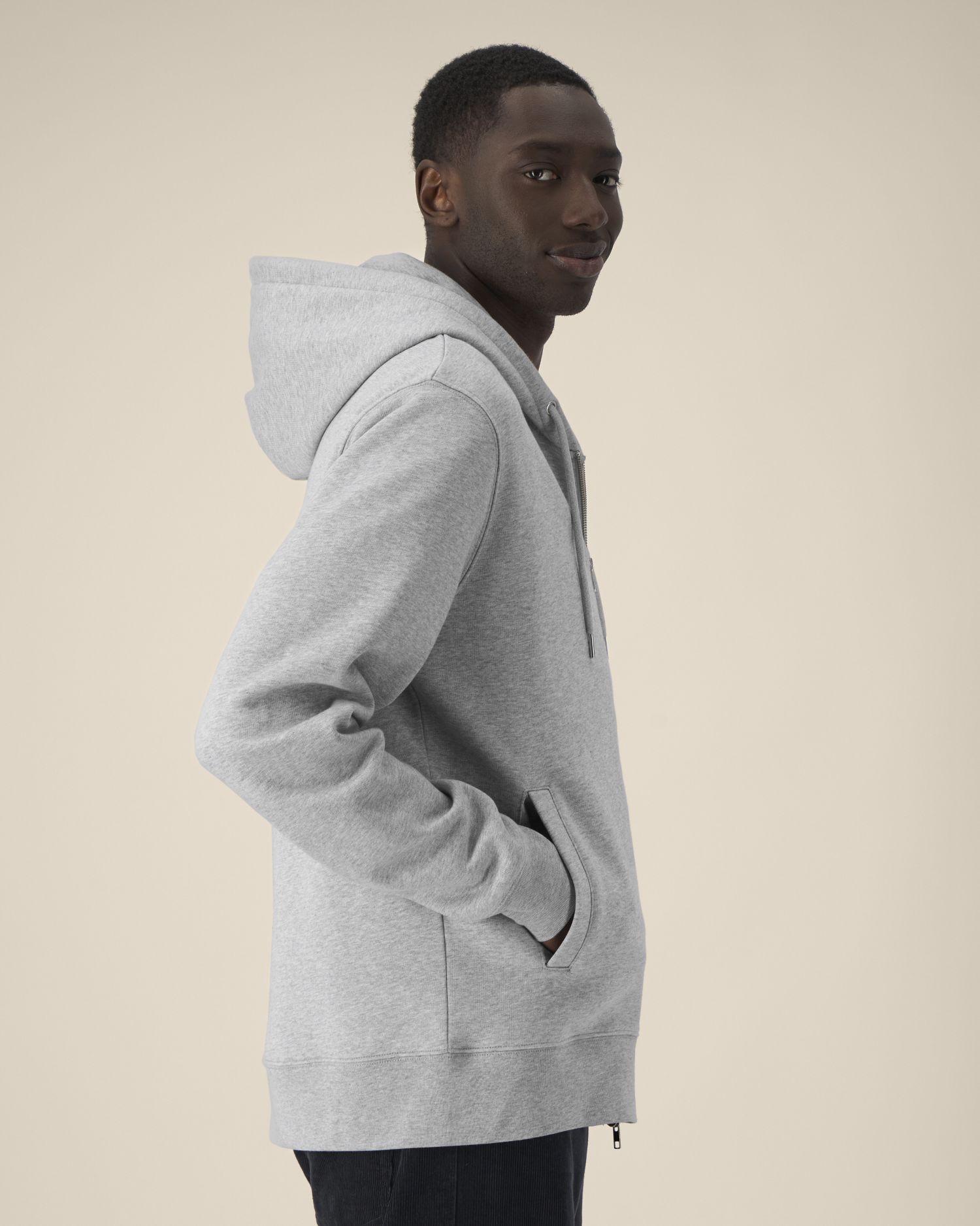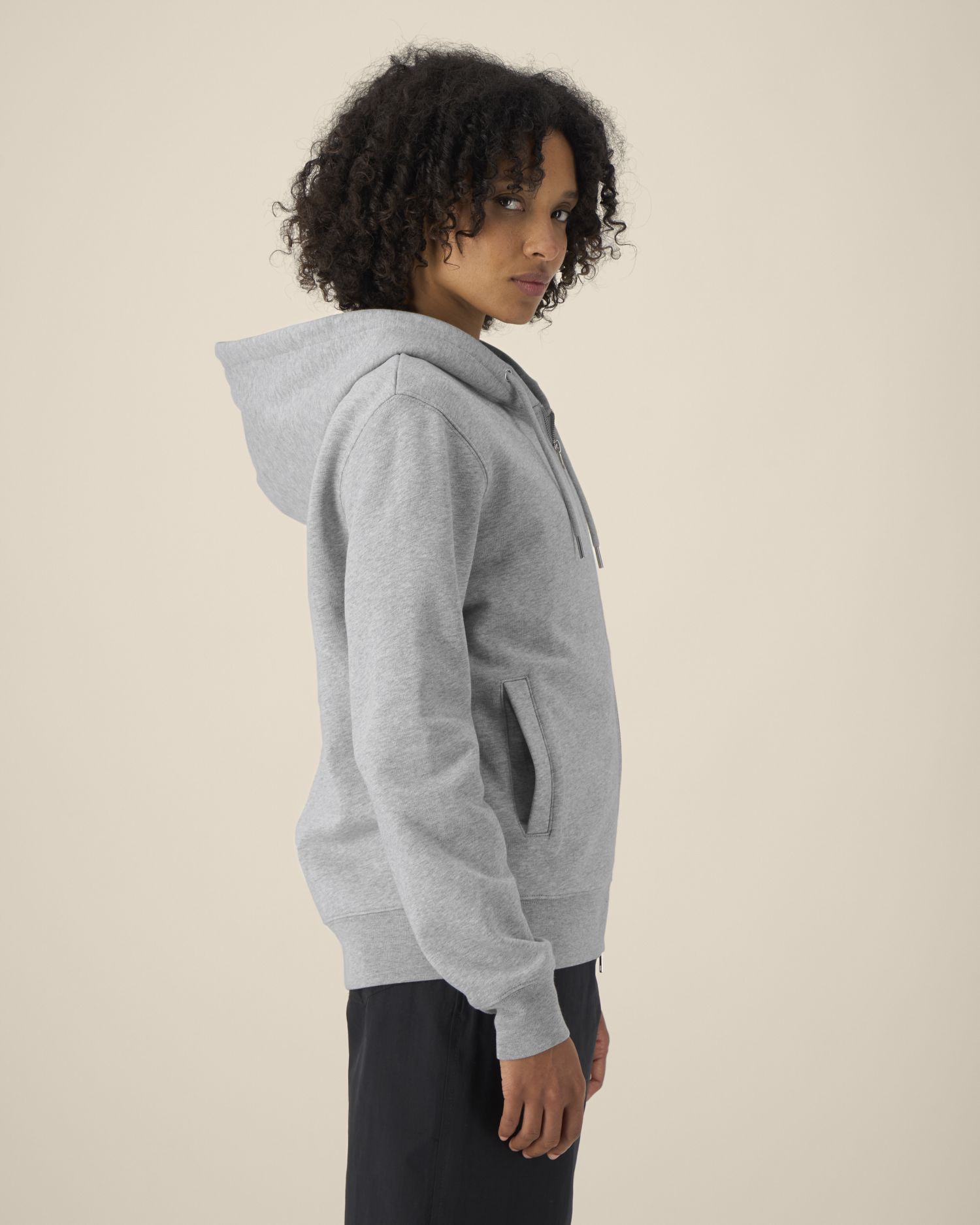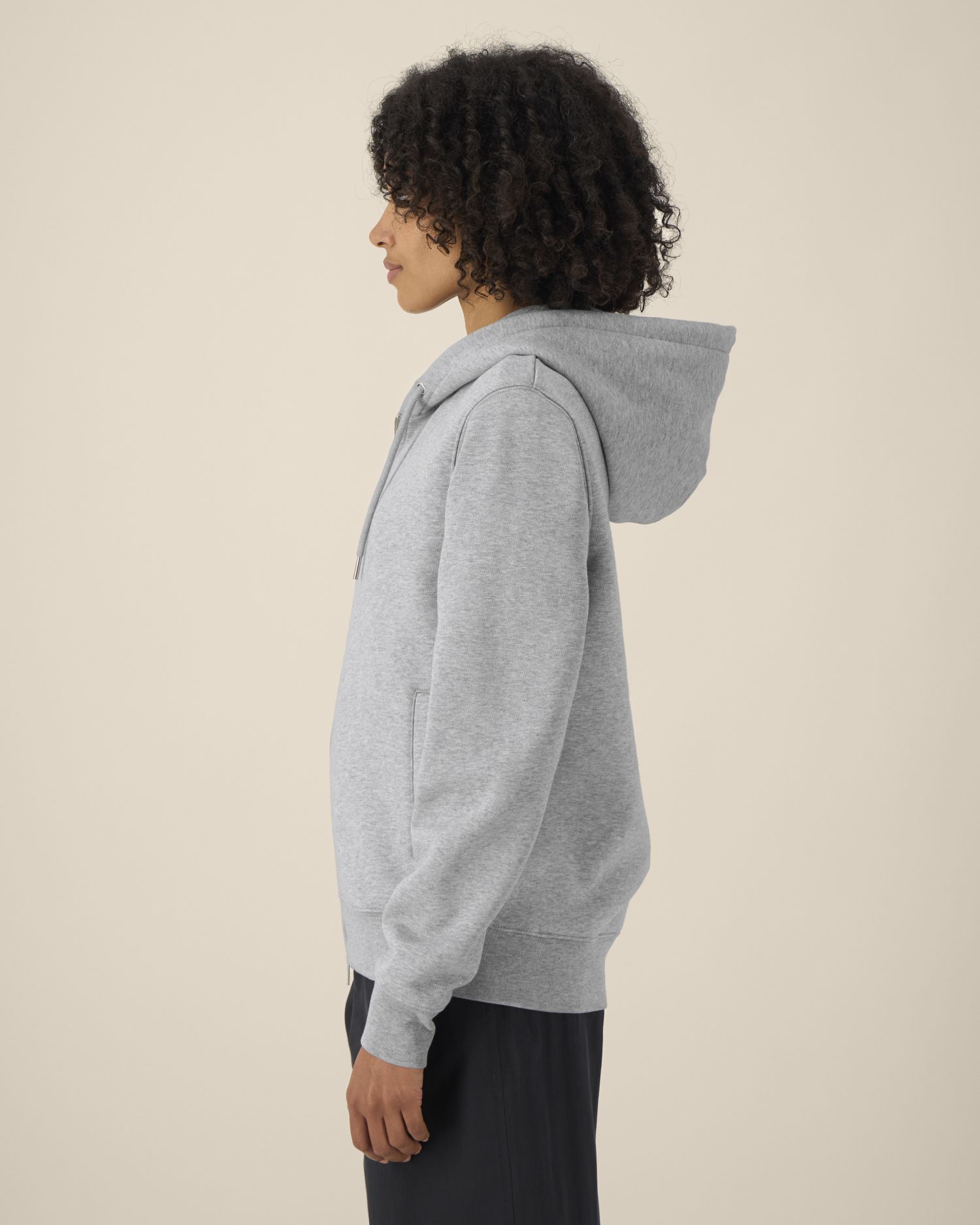 The unisex zip-through hoodie in cotton-TENCEL™ Modal 65% Cotton - Organic Ring Spun Combed, 35% Modal Brushed Fabric washed Tumble Dry No Wash at 30° 320 G/M²