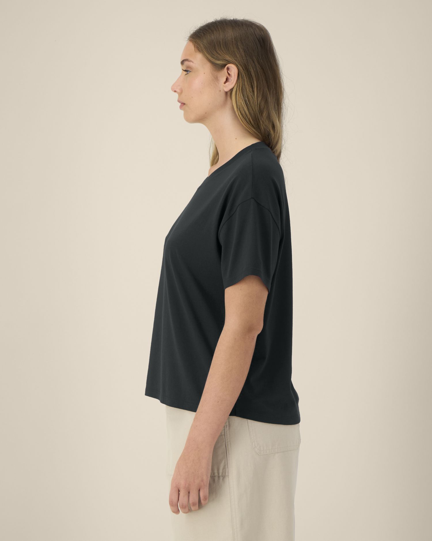 The women's t-shirt in cotton-TENCEL™ Modal 40% Modal, 60% Cotton - Organic Ring Spun Combed Single Jersey Panel washed Tumble Dry No Wash at 30° 155 G/M²